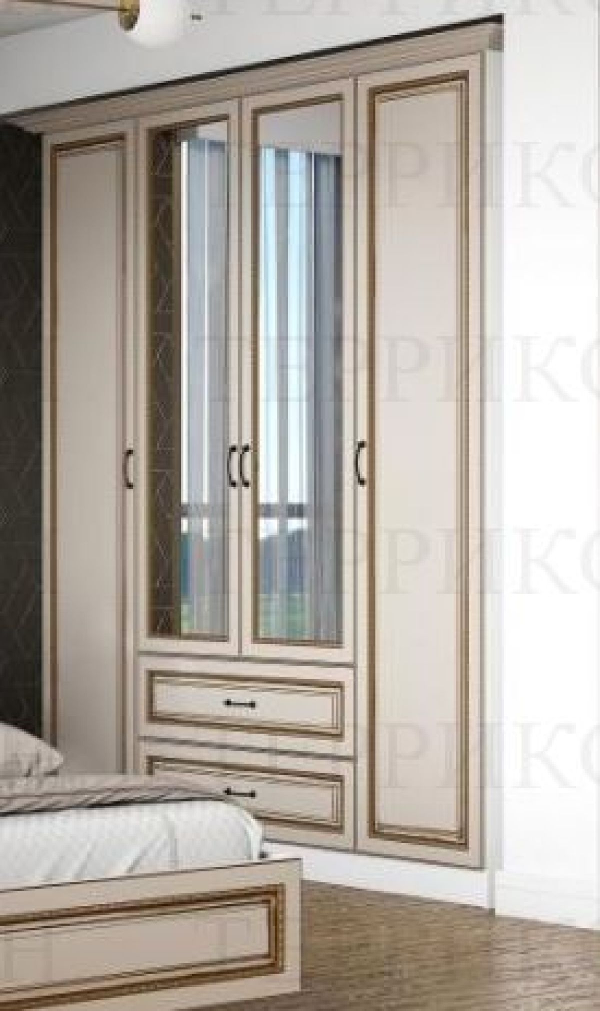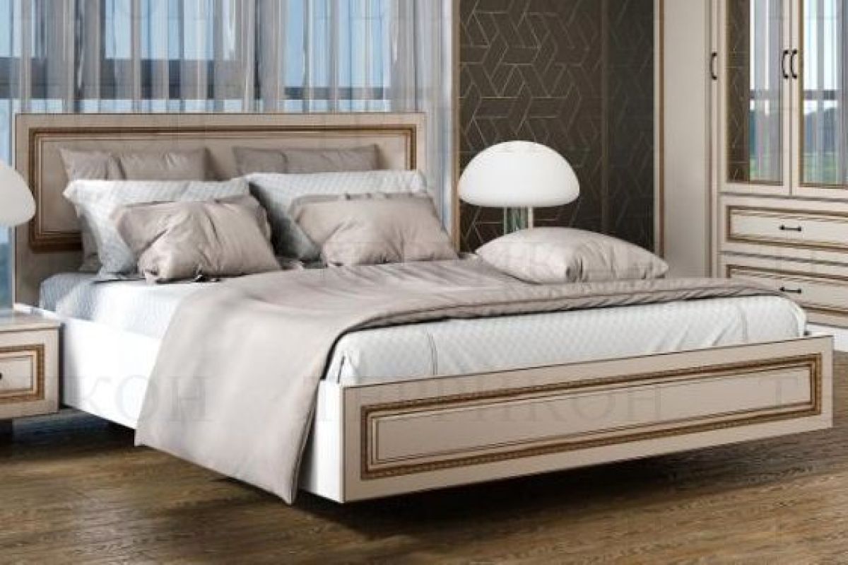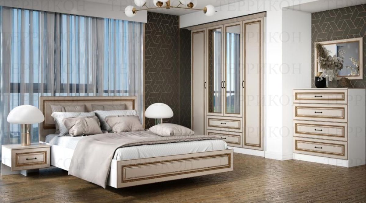 Модульная спальня Женева (ЛДСП белый/МДФ софт светлый с патиной золото)